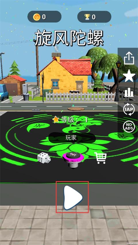 1、下载安装后点击开始按钮进入游戏,在主界面选择单人模式或双人对战模式,滑动屏幕完成陀螺初始加速。