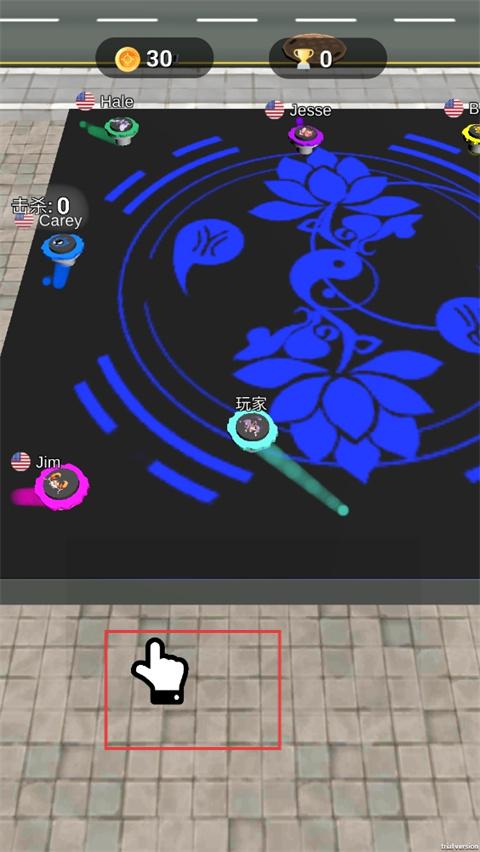 1、基础操控技巧:滑动屏幕力度决定陀螺移动速度,快速滑动可触发冲刺状态,转弯时需提前减速避免因惯性冲出擂台。
