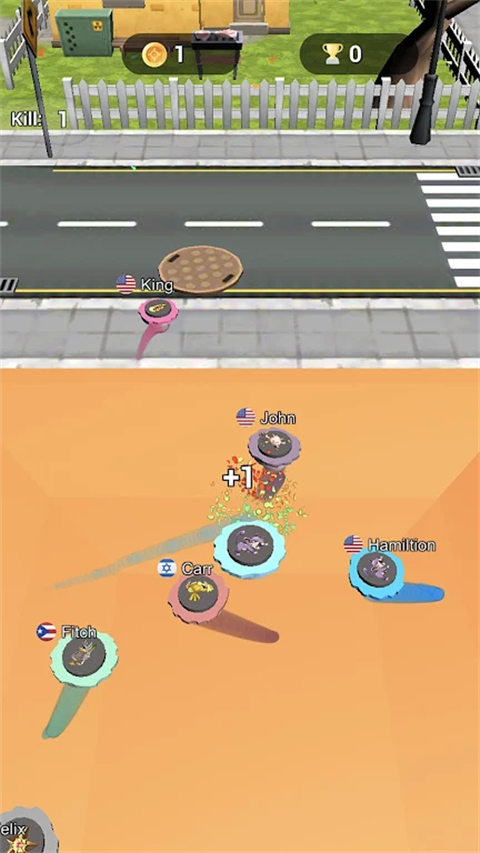 2、即时反馈机制:陀螺碰撞时触发震动反馈,掉落擂台或击败对手有专属音效,视觉音效同步强化竞技成就感。