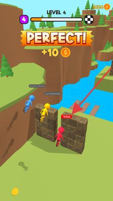 2、奔跑中超越其他玩家(蓝色、黄色小人),通过关卡(LEVEL4)获“PERFECT!”评价与奖励。