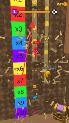 3、在阶梯关卡,选倍数通道(x2-x10),收集金币、冲刺到终点,争取竞速胜利。