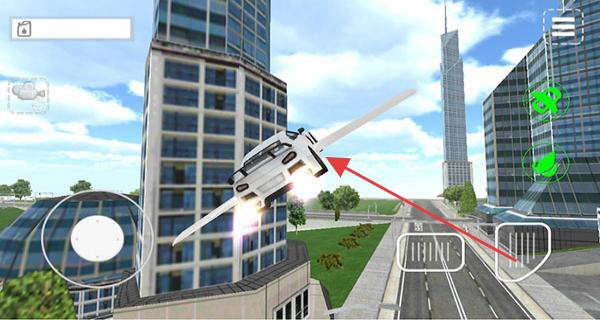 3、调整飞行汽车的角度(箭头指向转向动作),规划空中路线,避开城市建筑,平稳操控,完成飞行挑战,探索更多区域。