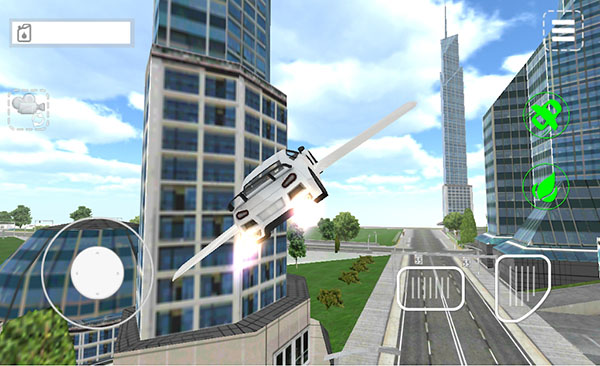 1、操控飞行汽车(界面显示空中姿态),通过左侧虚拟摇杆调整方向,右侧按键控制飞行,适应高空环境,开启飞行之旅。