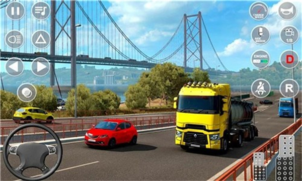 3、写实驾驶系统:模拟引擎启动预热、档位切换逻辑,攀爬陡坡需控制油门避免空转,涉水时触发引擎进水风险,搭配方向盘震动反馈,还原专业卡车驾驶物理逻辑。