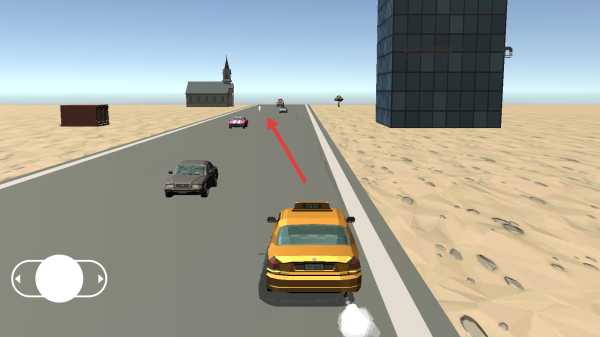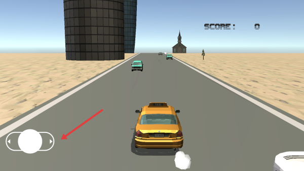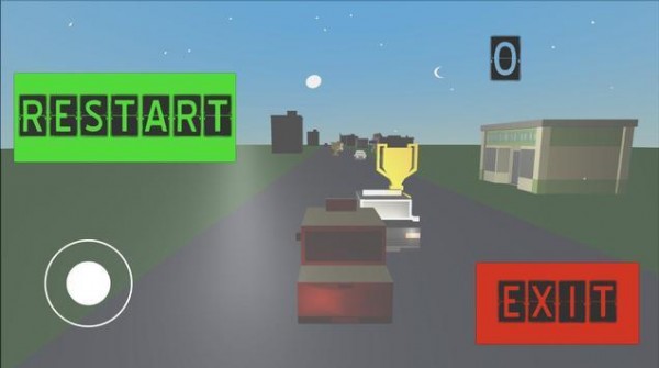 2、用左侧摇杆控方向,避绿色/粉色车,沿公路行驶,保“score:0”不撞车。