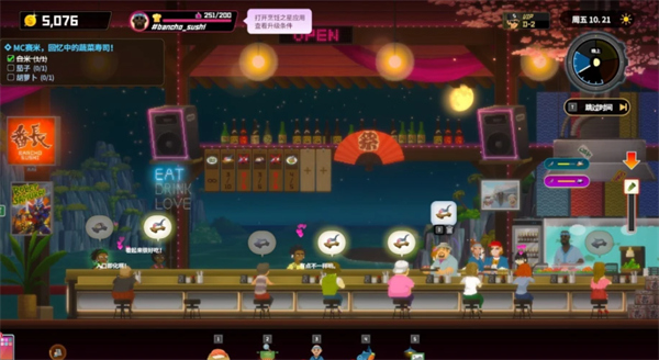环境优化:每增加1个装饰物(如鱼缸、壁画)提升5%顾客满意度,每5个装饰物触发"舒适环境"buff,延长所有顾客容忍时间20%。