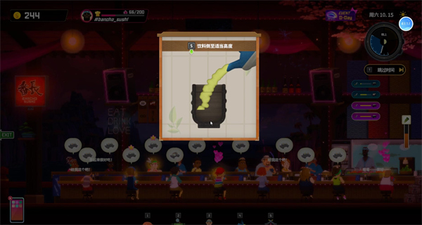 动态调整:观察顾客类型分布,若喝茶顾客比例超过60%,增加茶水类菜单占比至40%,使用"特殊订单"功能(F键)快速消耗即将过期的食材。