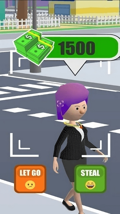 2、操控小偷悄悄靠近目标,注意避开巡逻警察的视线范围,在合适时机点击屏幕施展偷窃动作,快速夺取物品。