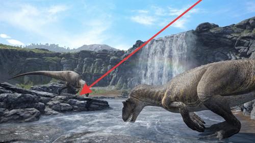 2、探索场景(瀑布、森林),留意恐龙分布,借地形(岩石、树木)躲避攻击,寻找安全区域建家、采集物资。