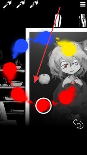 1、遇到“食卓の静物画”,观察画面细节,点击互动触发色彩填充解谜,按提示匹配颜色(红、蓝、黄)。