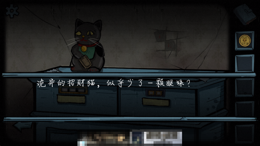 眼睛获取与使用:获取眼睛物品(文档描述为“恶心也得拿着”),把眼睛装在屋内桌子上的空隙处,出现文字,建立物品使用与线索获取的关联。