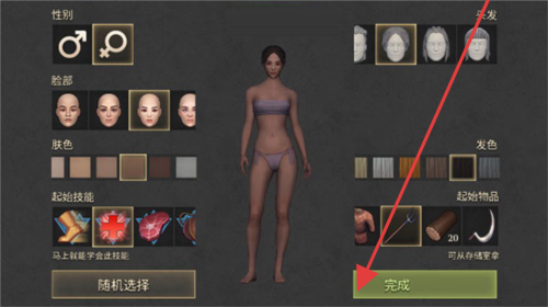 2、在角色创建,选性别、调整脸部/肤色等,输入新名称点【确定】,再点【完成】进入游戏世界。