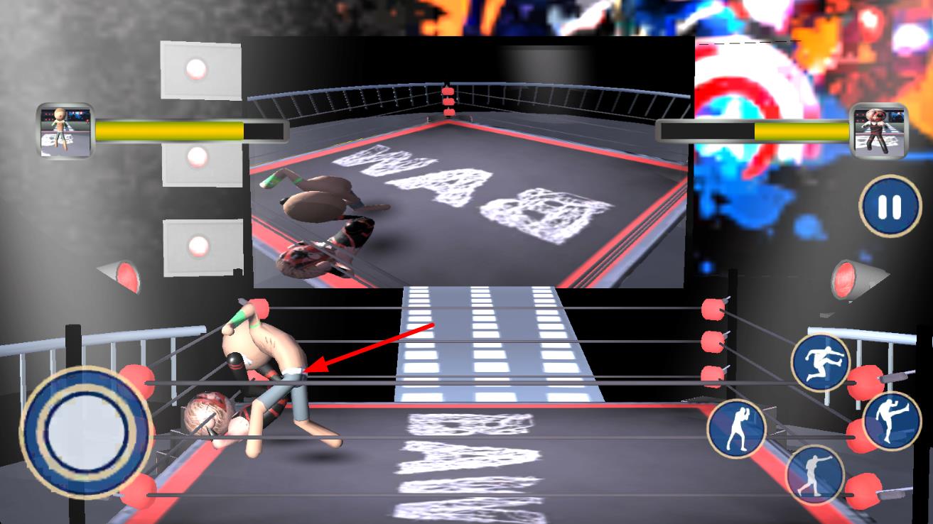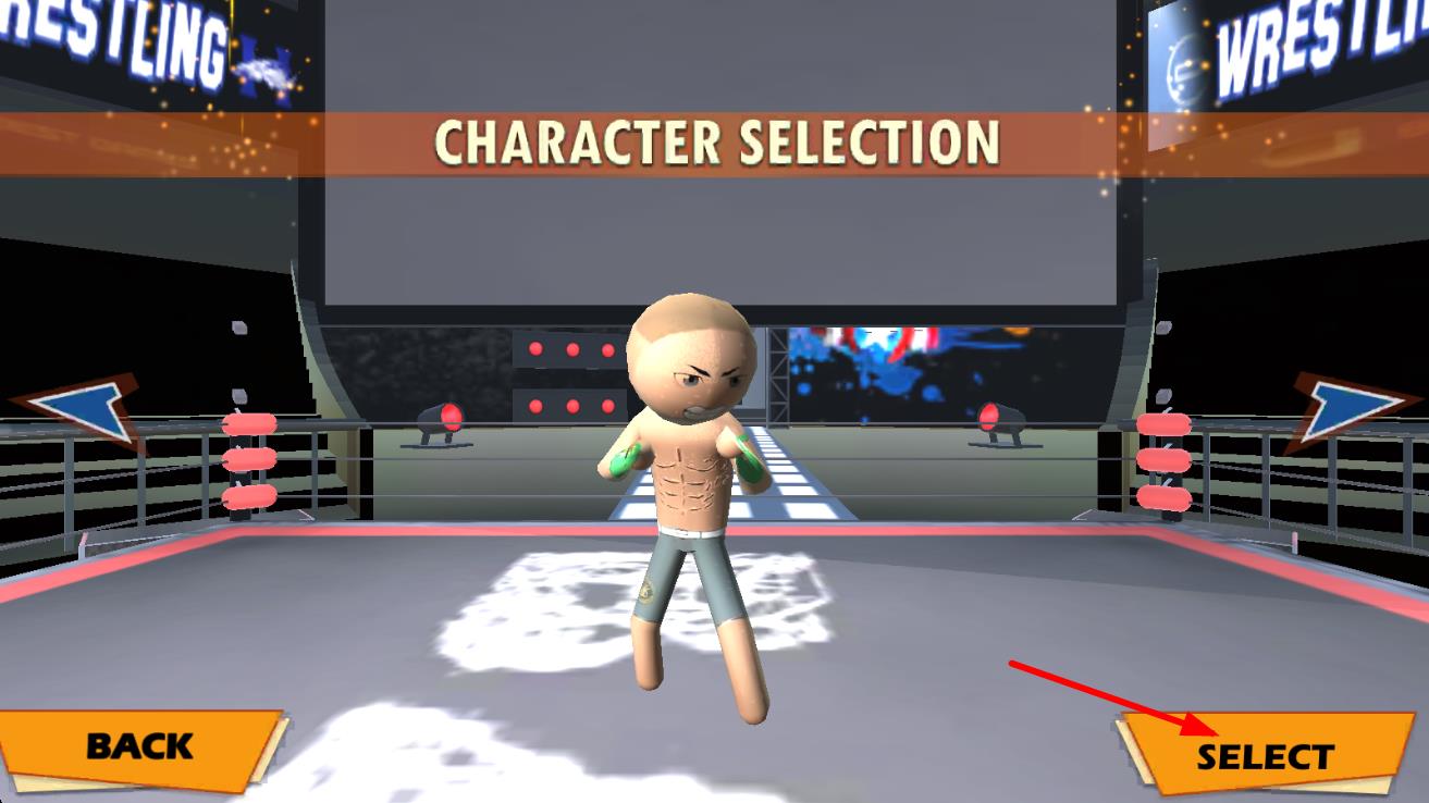 1、进入游戏后选择火柴人角色,登上世界比赛擂台,面对对手准备展开拳击对战。