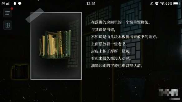 书架排查:回到房间后,面对三个选项,首先排查书架,发现书架上有很厚的灰,很久没有人动过,确定此为错误选项,排除干扰。