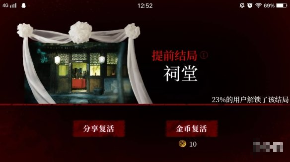 外出结局:经过一系列剧情后,来到第一个结局分歧点,选择"出去看看",触发提前结局1,祠堂,了解此选择对应的剧情走向。