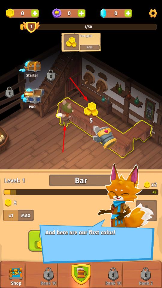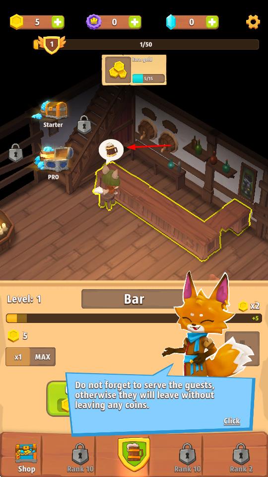 2、顾客进入酒馆后,需及时响应需求,手动操作提供服务,避免顾客离开,保障金币收益。