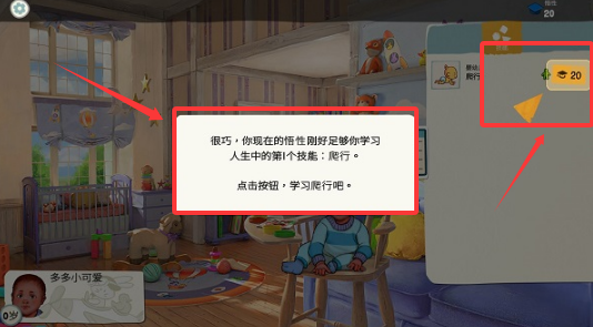 2、人生中的第1个技能便是最基础的爬行,点击花费悟性开始学习。