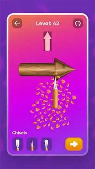 3、界面有木材雕刻区域、工具选择栏,属于木工雕刻模拟类操作场景,用于玩家进行木材雕刻挑战。