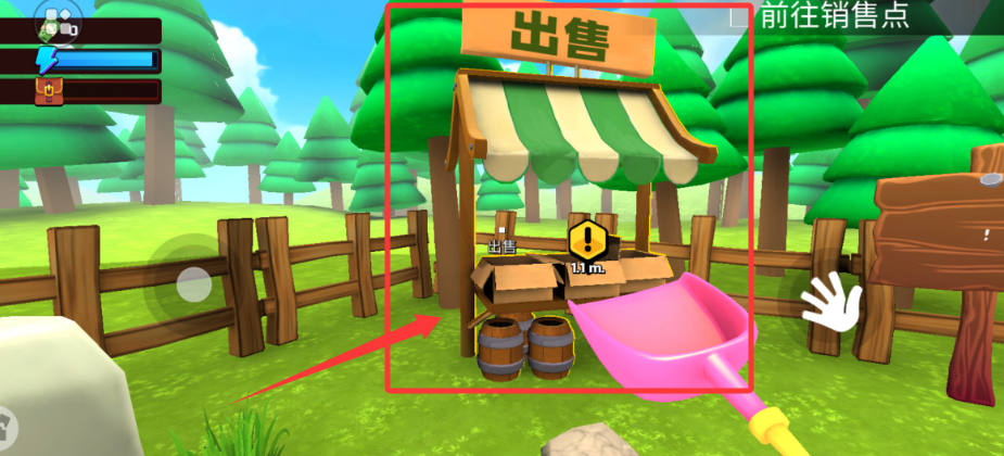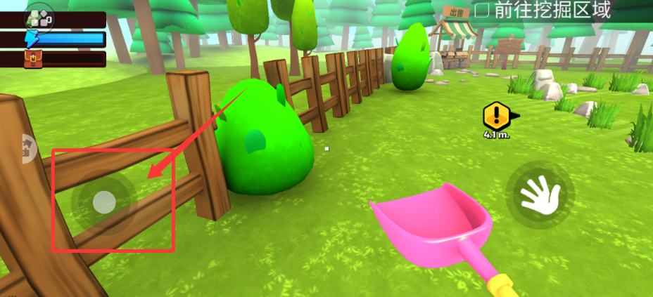1、启动游戏后,利用左下角的虚拟摇杆操控人物移动,前往标记矿区挖掘各类矿物资源。