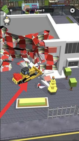 2、呈现推土机拆除建筑场景,属于模拟经营或驾驶操作类,玩家操控推土机等设备进行拆除作业,利用工程车辆执行破坏、拆除任务。