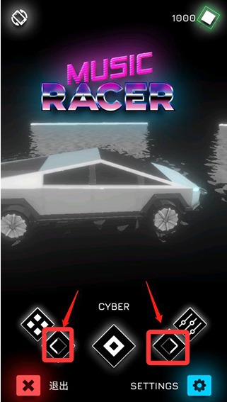 1、选择赛车与地图后:在规定赛道上随音乐节拍前进,屏幕一侧滑动即可控制方向,上滑实现跳跃,躲避障碍并收集节拍点。