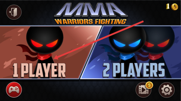 1、在主界面,点击【1-PLAYER】,选择单人模式,进入角色对战选择,准备挑战AI对手。