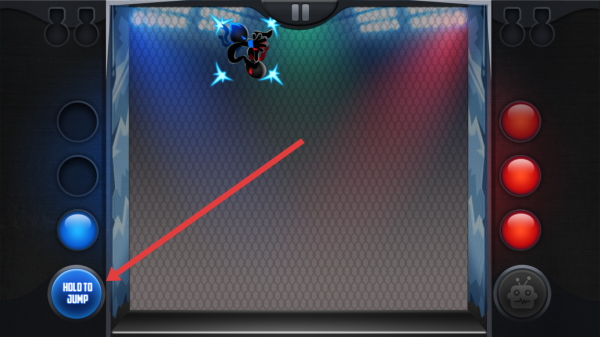 3、战斗时,按住【HOLD-TO-JUMP】按钮,控制角色跳跃,配合其他按键,施展连招,击败对手。
