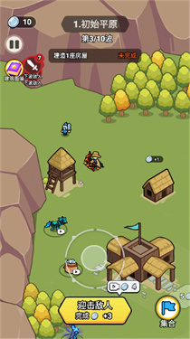 3、波次防御抵御10波敌人,操控箭塔攻击来袭怪物,保护主城,推进关卡进度(第1/10波)。