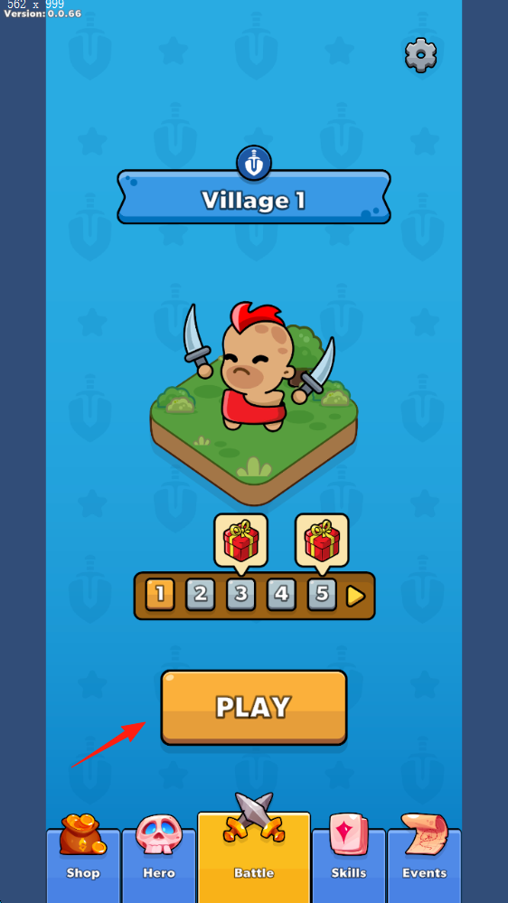 1、开局准备在“Village1”界面,点击“PLAY”,进入关卡,操控角色(双刀战士),准备防御。