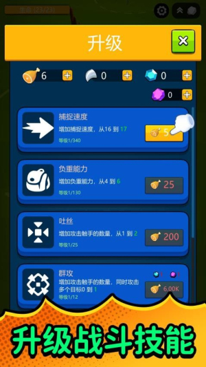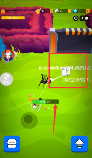 3、遇到难缠的目标可以用蜘蛛网束缚后再攻击,别忘了用抓到的人类去兑换食物。