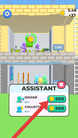 2、玩家可花费金币雇佣“DIGGER”“COLLECTOR”等助手,协助进行建筑建造、资源收集等操作,通过积累金币、扩充人员推进建筑经营进程,体验从基础建设到逐步发展的经营乐趣。