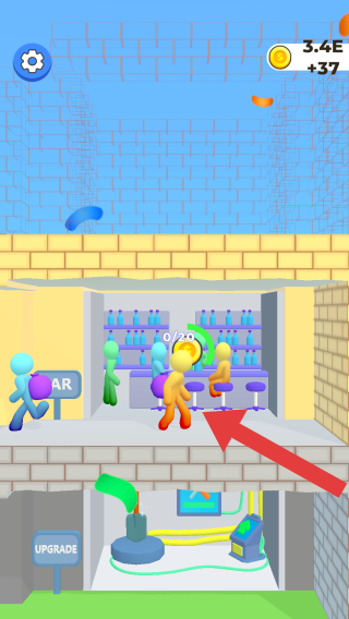 3、玩家操控角色在多层建筑场景中活动,可进行建筑升级、人员互动等,通过积累金币推进建筑经营,打造专属建筑空间,体验从建设到运营的经营乐趣。
