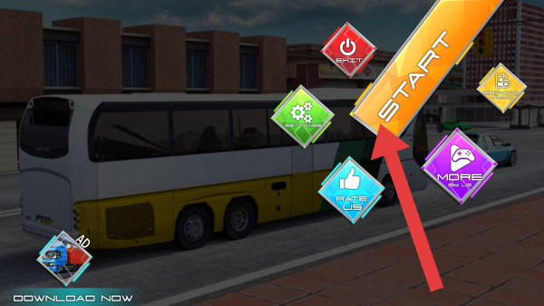 1、玩家可点击【START】开始驾驶巴士,体验模拟公交/长途巴士驾驶玩法,像执行运输任务、应对路况等,是典型的模拟驾驶开局场景。