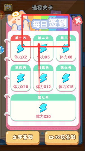 1、每日上线第一时间要查看您的关卡选择页面,得到大量游戏资源,方便后续游戏体验哦。