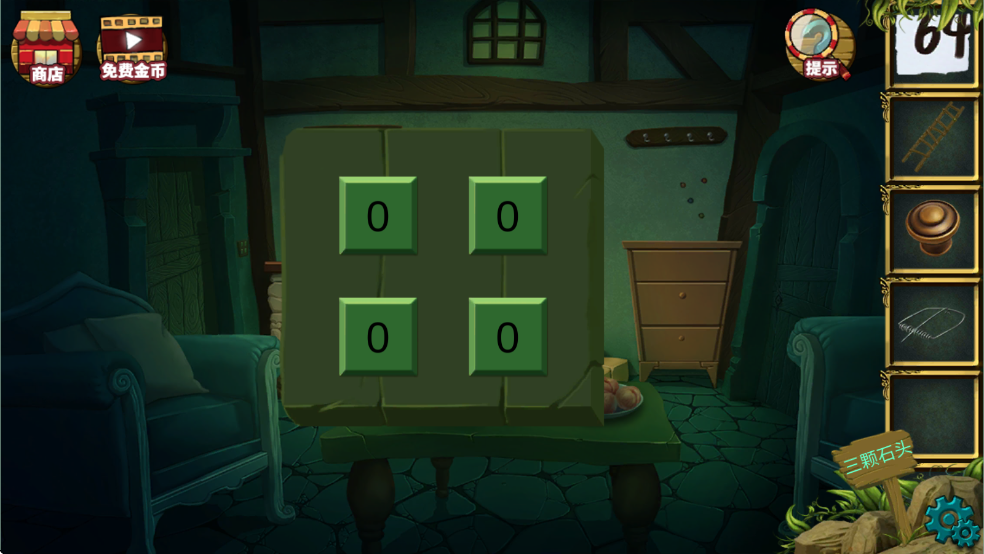 最终逃脱:将棒棒糖放置在屋外树的洞里,吸引特定生物出现,获得纽扣道具,将纽扣交给姜饼人,根据提示从河中饼干边数得出密码4536,使用此密码打开锅旁的装置获得火柴。