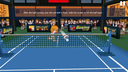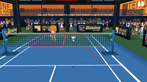 3、通过虚拟摇杆操控选手走位,结合手势滑动完成击球动作。