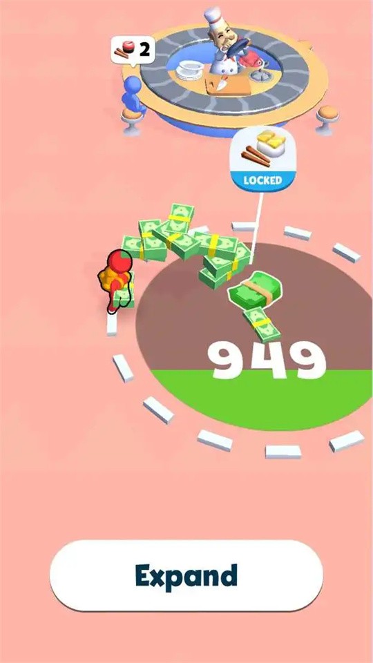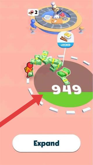 2、玩家操控角色收集金币,可进行“Expand(拓展)”等操作,属于解压,通过积累财富、拓展区域推进进程。
