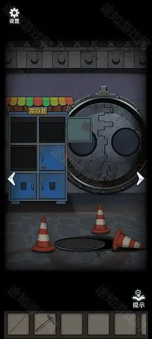 寄存处探索:完成新手引导后获取钥匙打开寄存处,得到锤子、棍子和螺丝刀,使用棍子和锤子在大铁门左边得到松子,右边用螺丝刀打开铁箱获取重要道具。