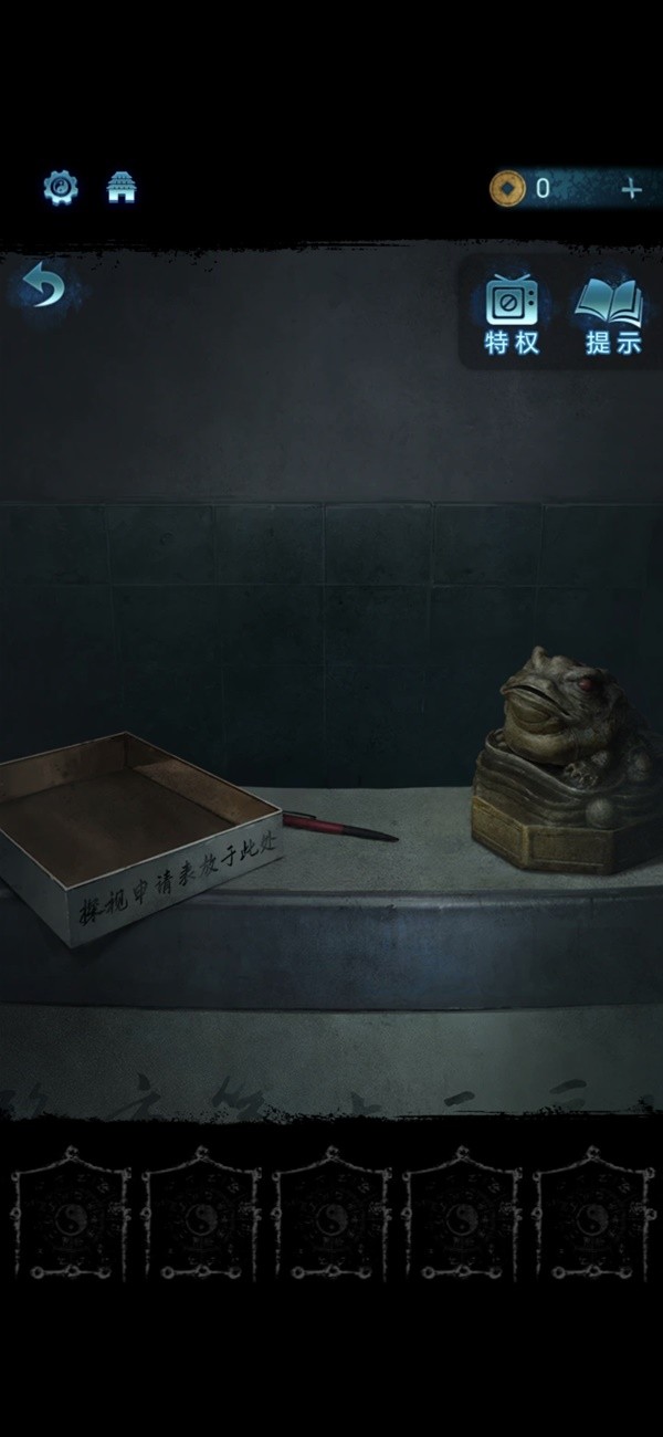 3、道具关联:用毛笔填写空盒内的探视申请表(结合公告板线索),放置回前台,触发金蟾机关或新线索解锁。