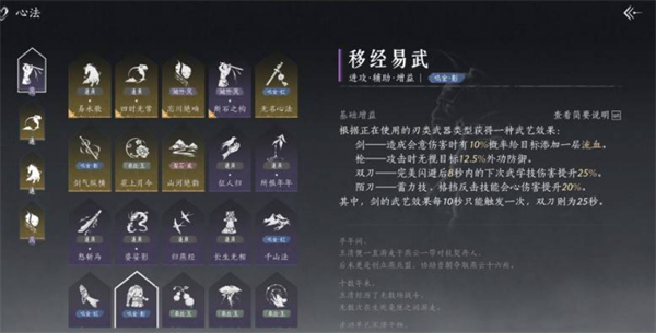 - 燕云十六声中,移经易武心法作为刃类武器核心辅助增益,需通过完成「五音启太平」系列任务与收集指定蹊跷解锁,该心法可根据武器类型提供差异化武艺效果,