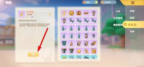 1、来到背包页面,选择右侧的消耗品。