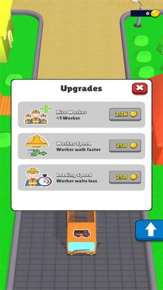 3、从画面看,是模拟经营类的升级界面,涉及工人雇佣、速度提升等玩法,常见于物流运输模拟经营游戏。