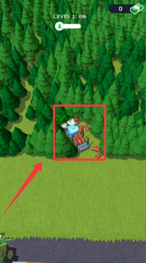 1、开始游戏后,控制角色驾驶收割机砍伐树木,收集木材作为基础资源,用于后续的建造任务。