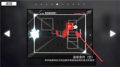 2、将手指保持在判定线或方形边框,接住红色音符。