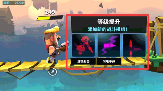 3、当你通过一定关卡后,会提升等级,届时你可以选择一个战斗模组提升你的战斗力。