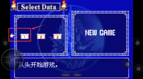 2、选择存档1继续,或点NEWGAME新建。