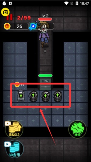 2、角色进入床铺后自动产出资源,逐步解锁各种设施与防御塔,根据当前阶段合理分配金币与电力至关重要。