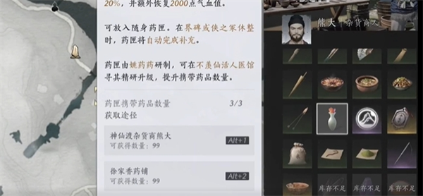 3、合理利用背包快捷道具查看功能,及时了解药品购买渠道和库存情况,确保在需要时能获取药品,或提前准备制作材料。