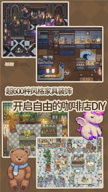 - 非日常邂逅故事是一款融合像素画风与经营冒险元素的治愈系作品,在奇幻小镇中为玩家呈现独特的非日常体验游戏以复古像素风格构建咖啡馆与家园场景,搭配舒