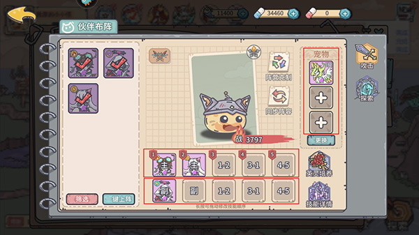 2、宠物技能协同:三个宠物技能需与英灵技能协同,如选择治疗宠物搭配高输出英灵,提升队伍生存能力。